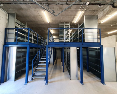 Installation d’une mezzanine sur deux niveaux pour le stockage…
