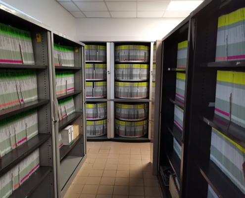 Rayonnage fixe avec tablettes télescopiques pour faciliter la manipulation des dossiers