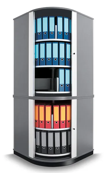 Optimisez les angles perdus de vos bureaux avec l’armoire rotative d’angle Corner. Cette solution de rangement pivotante s'intègre parfaitement dans les coins pour transformer chaque recoin en espace de stockage haute densité.
